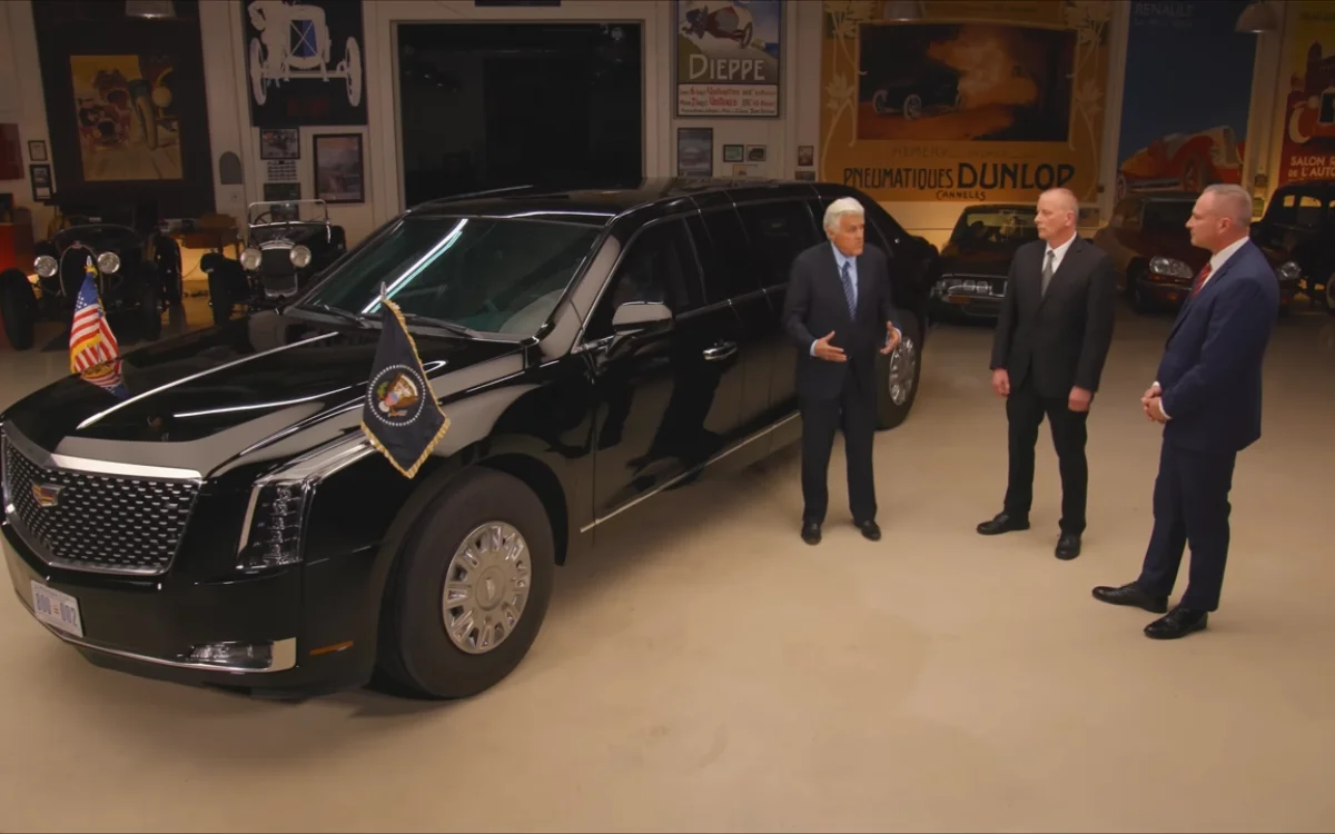 The Beast rolls into Jay Leno's garage and Secret Service agents explain why they can't even let him peek inside