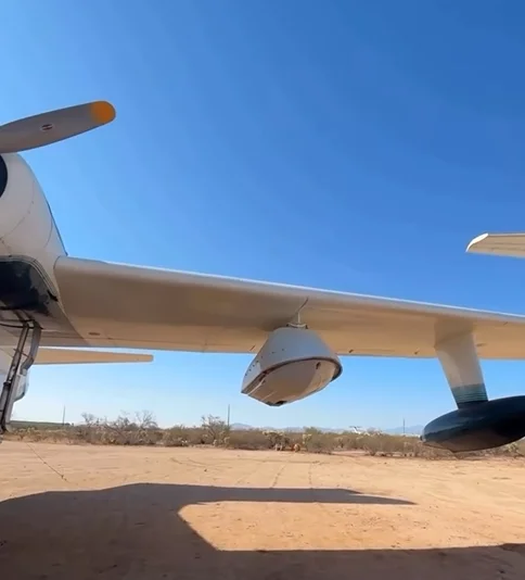 Most notably, engineers added two pods under the wings, each carrying a Polaris SL650 jet ski.