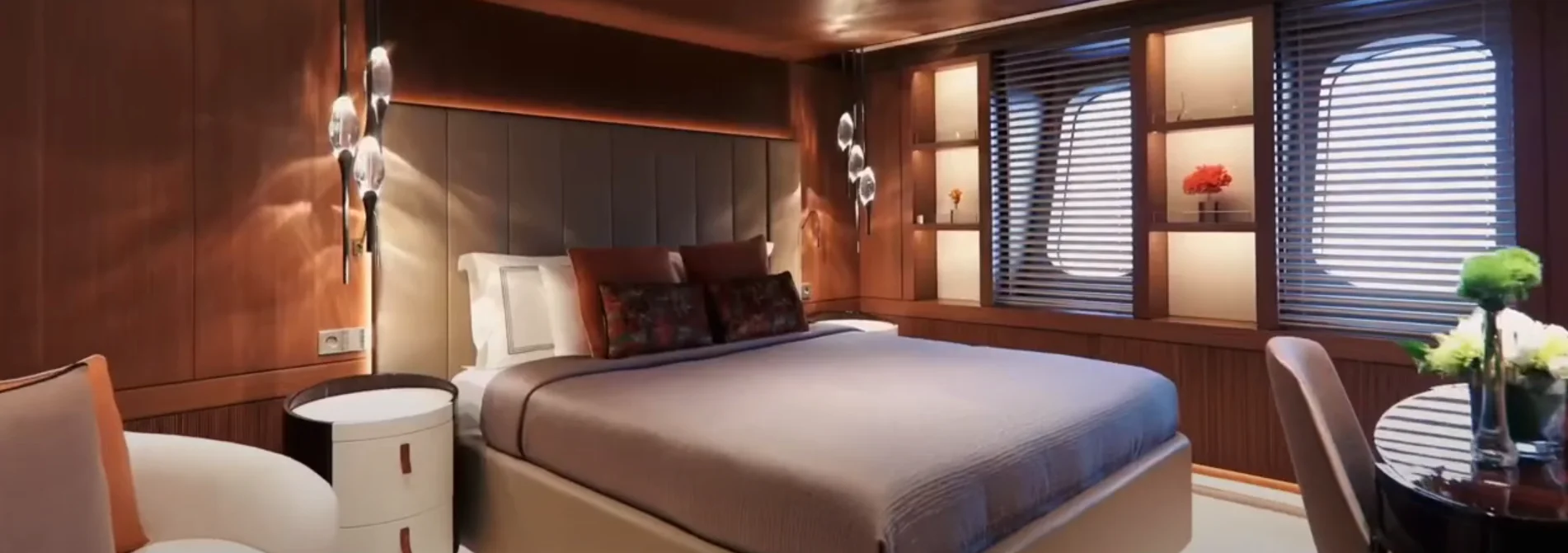 Across its 12 suites, 24 guests can sleep on Victorious as it glides through the ocean at a range of 14,000 nautical miles.