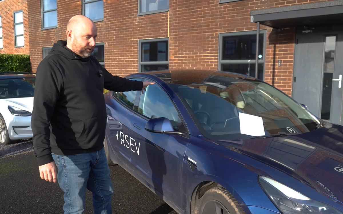 Miles is the Tesla Model 3 in the ownership of UK content creator and car dealer RSymons AKA RSEV.