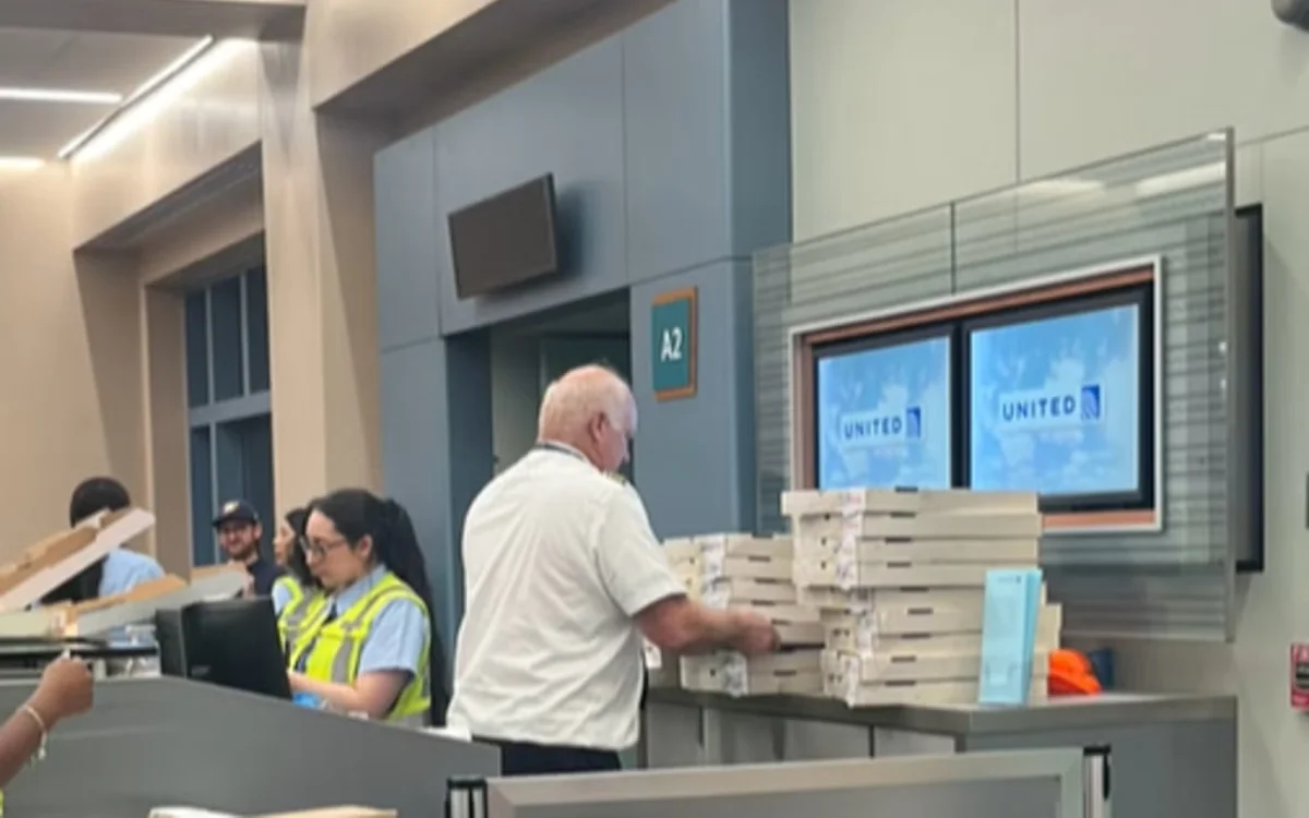 He used his own money to order 30 piping-hot pizzas directly to the gate, and he laid out all of the pizzas on tables and made sure every single passenger had at least one slice.