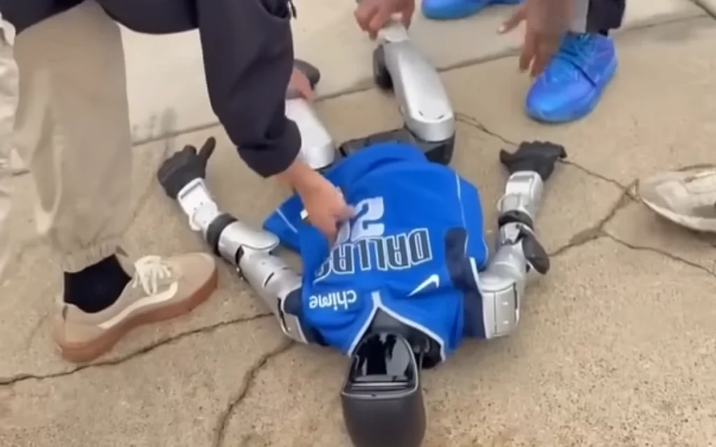 The result was instant: the robot stumbled backward, lost its balance, and toppled onto the floor.
