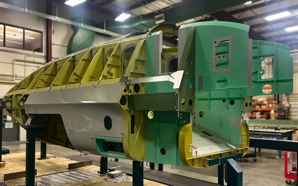 The fuselage is already sitting on the factory floor, waiting for a diamond-shaped wing that could double as a sci-fi prop.