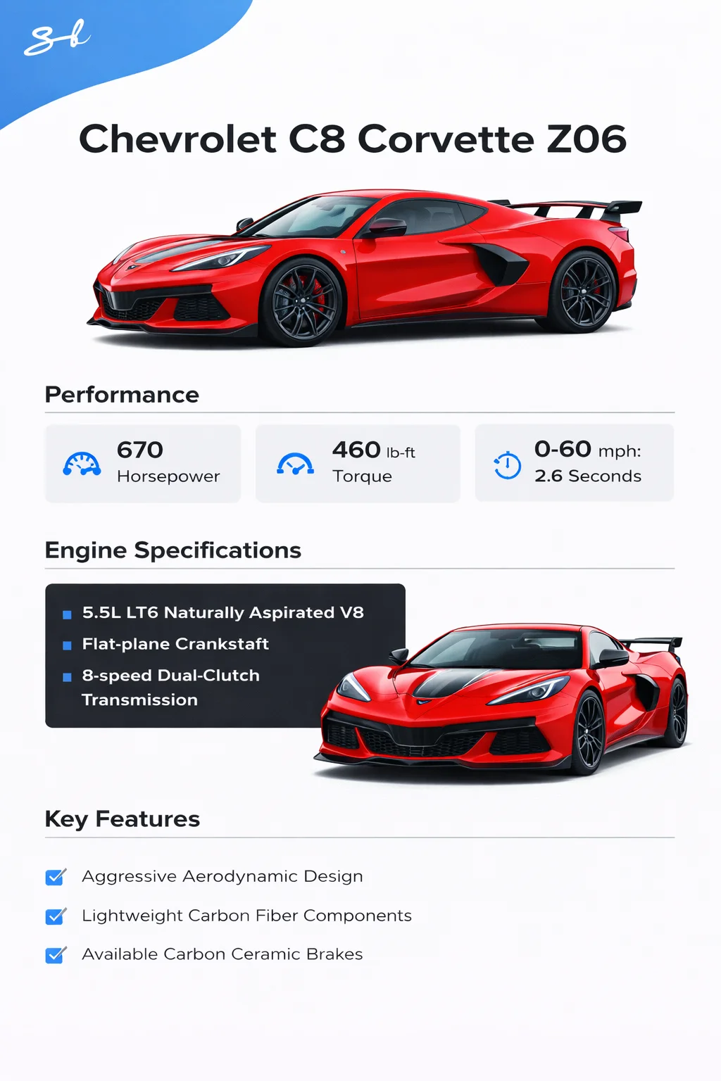 Under the hood sits a huge 5.5-liter LT6 V8 engine that makes 670hp and 460lb-ft of torque.