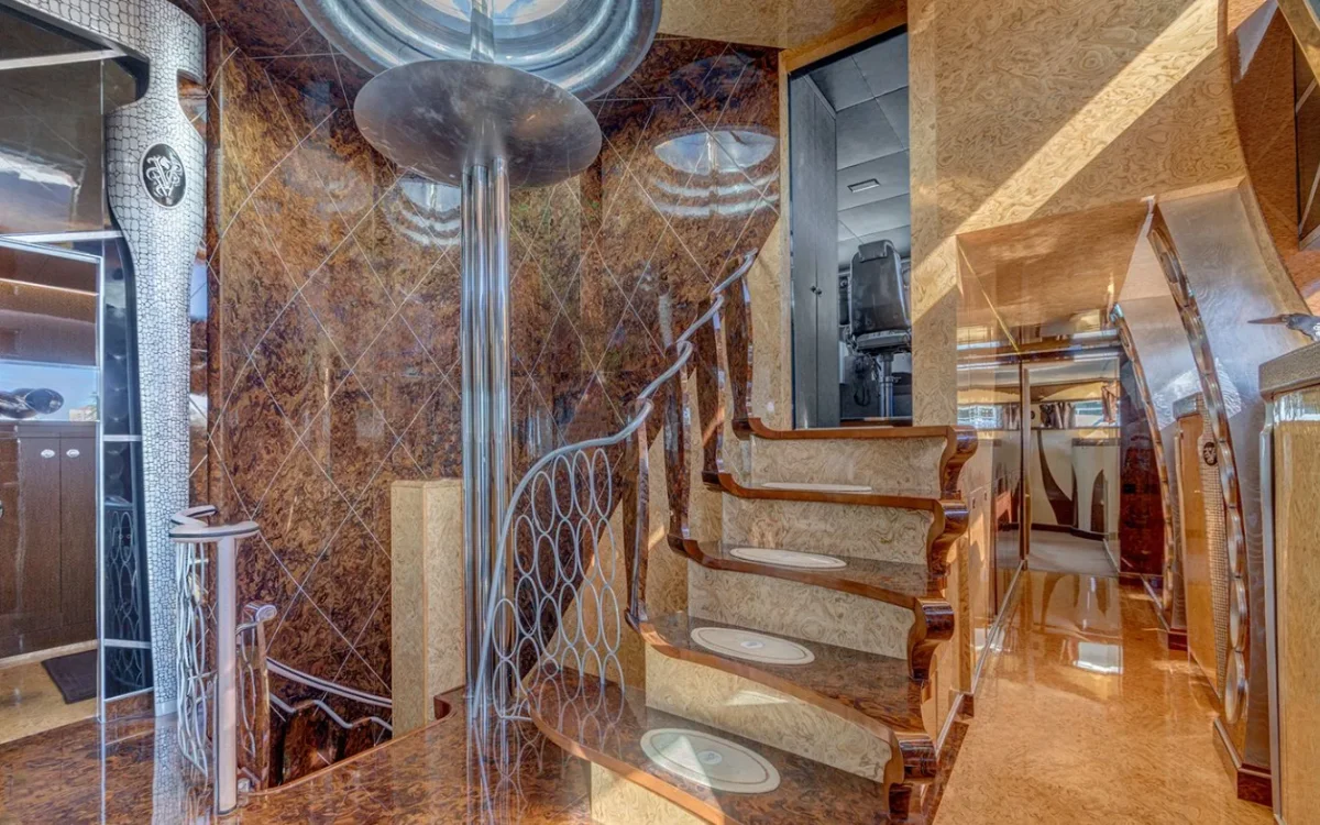 But of course, the 164-feet vessel isn’t just fast, its interiors were designed by Roberto Cavalli and are about as opulent as you’ll ever see.