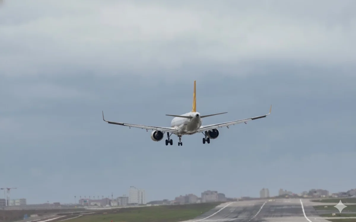 It shows an aircraft attempting a landing at Turkey’s Istanbul Airport – in the midst of 55mph winds.