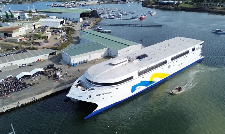 Sea trials began in January 2026, eight months after it was launched at builder Incat’s facility in Australia.