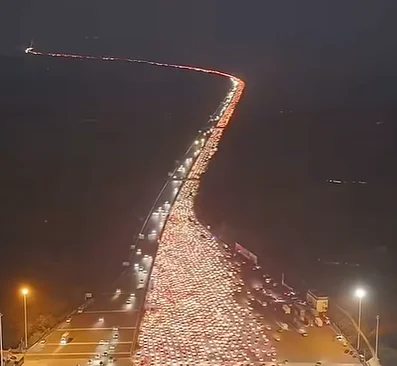 For over 62 miles, as far as the eye could see, cars jammed the roads, with reports even suggesting that, to make the best out of a bad situation, roadside vendors appeared, selling food and water.