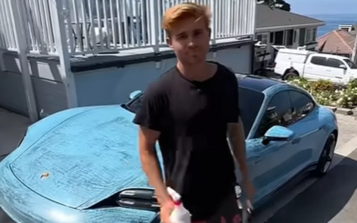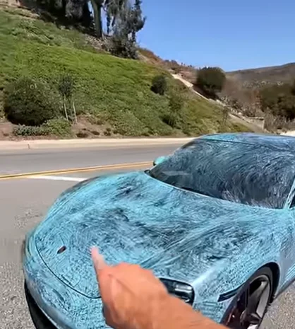 This Porsche looked slightly worse for wear after its owner wrote his subscribers’ names on the bright blue exterior.