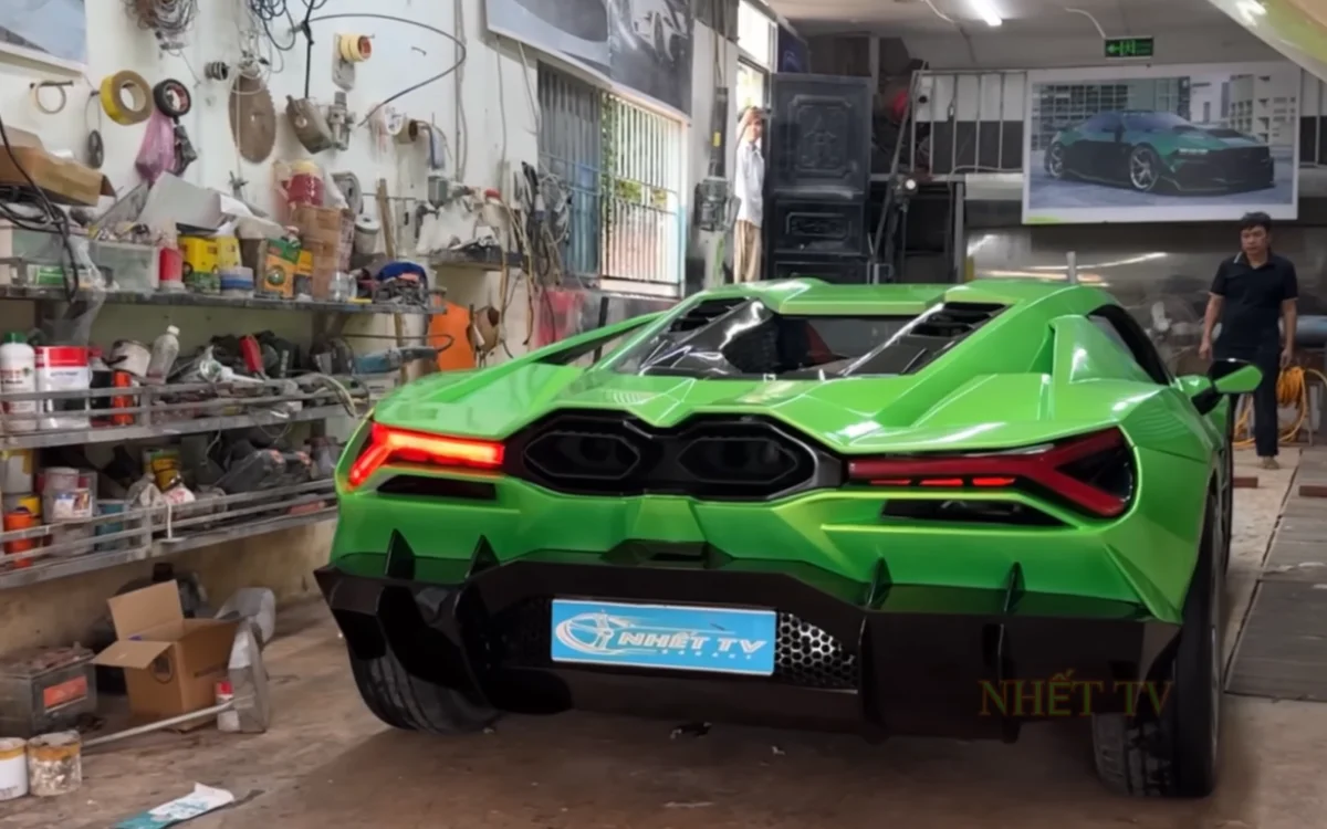 They cut and welded a custom steel frame by hand, shaping it to match the proportions of a Lamborghini.